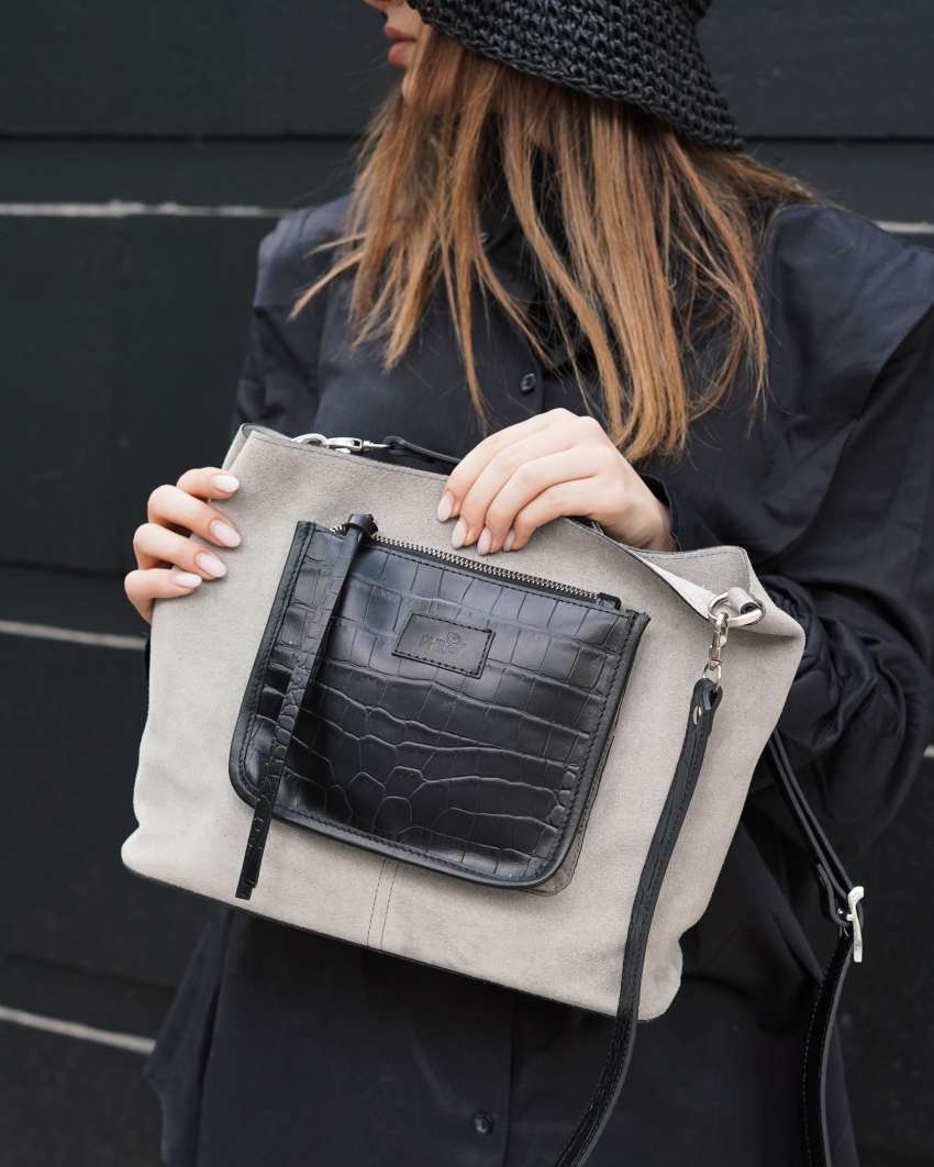 ساخته شده از چرم طبیعی گاوی نبوک است و در دو رنگ خاکستری و آجری خیره کننده در چرم فیل طراحی شده است.